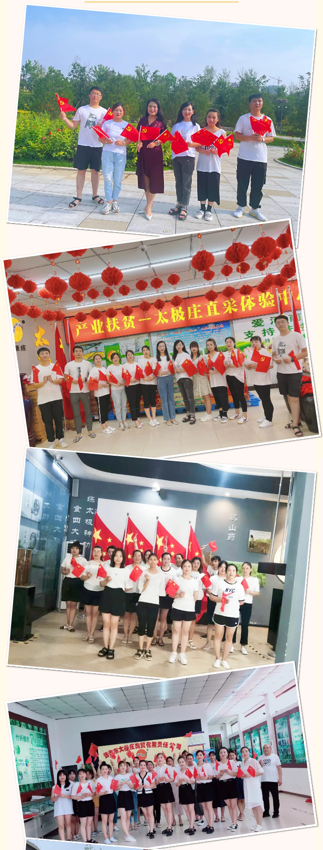 黨的百年華誕即將開(kāi)啟新的篇章,太極莊也將時(shí)刻秉持家國(guó)情懷,與黨同心、與國(guó)齊力,繼續(xù)擔(dān)當(dāng)實(shí)干,勇作社會(huì)發(fā)展主攻手,重大發(fā)展戰(zhàn)略的先行者,弘揚(yáng)懷藥事業(yè)發(fā)展的主力軍……為中國(guó)特色社會(huì)主義事業(yè)的繁榮發(fā)展貢獻(xiàn)出自己的力量。